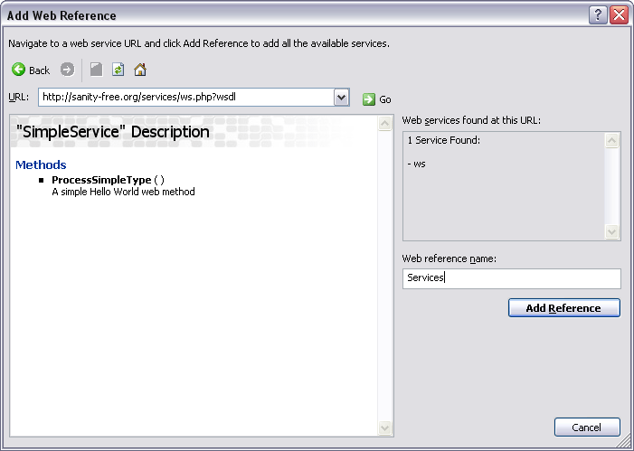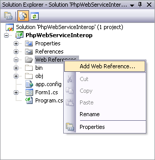 exit();PHPThat was it. From visual studio I was then able to consume the web service by adding a web reference